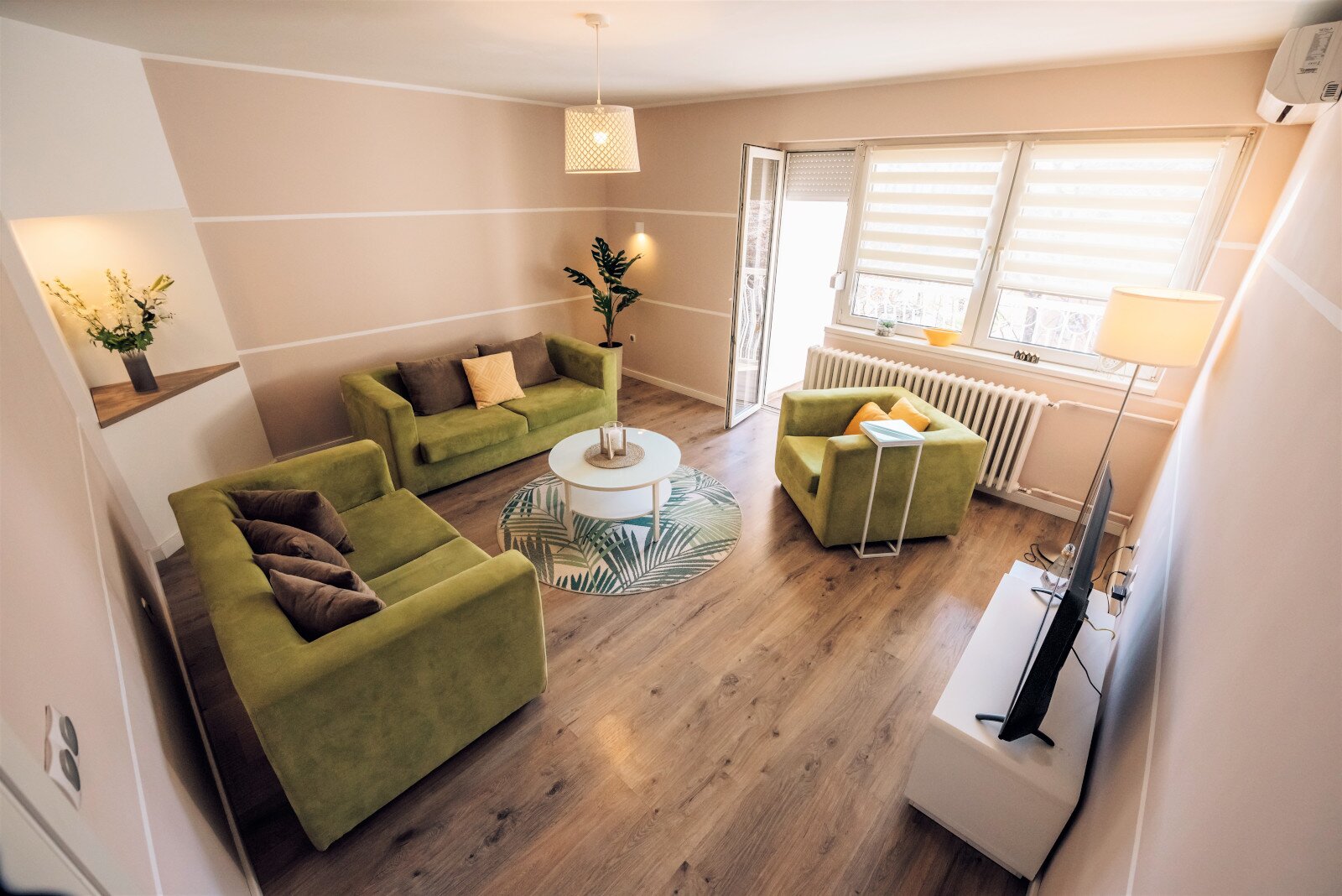 I mi smo putnici, tako da smo apartman opremili na osnovu našeg putničkog iskustva u pogledu udobnosti, komfora i prateće opreme u apartmanu. Apartman je komforan, svetao, izuzetno prostran, dvosoban (spavaća i dnevna soba), poseduje terasu i veliku kuhinju sa trpezarijom u kojoj se nalazi deo za sedenje i uživanje pored velikih prozora.