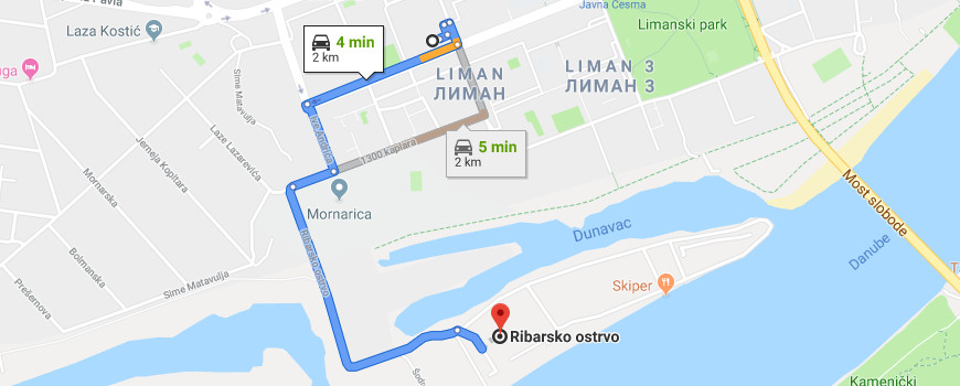 Ribarsko ostrvo predstavlje zaštićeno prirodno dobro koje se nalazi na levoj obali Dunava. Poznato je po velikom broju restorana sa ribljim i drugim specijalitetima, tavernama, splavovima i noćnim klubovima. Udaljeno je samo 4 min vožnje od apartmana.